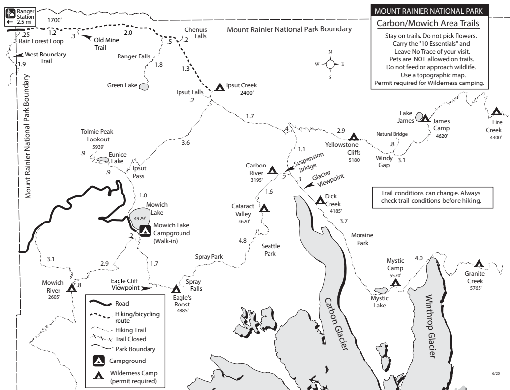 Mount Rainier National Park - Carbon River Area Trails Map